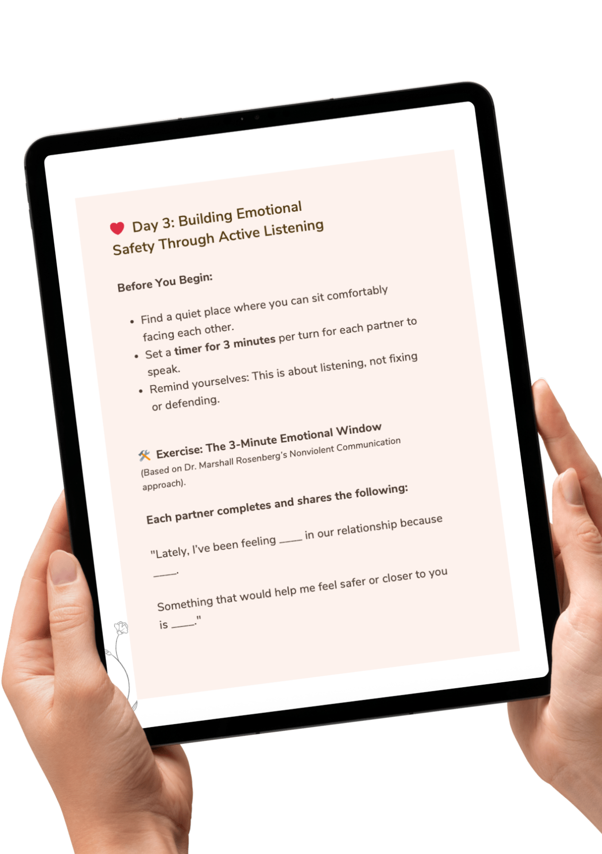 Heal & Reconnect- Workbook recreates that same safety in your own living room, using a therapist-reviewed plan designed to make vulnerable talks feel doable, not daunting.